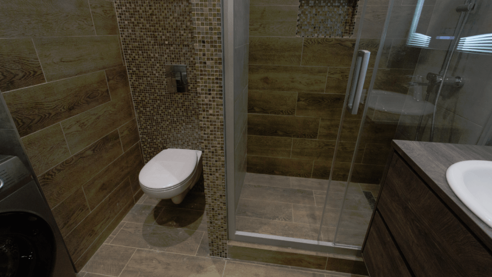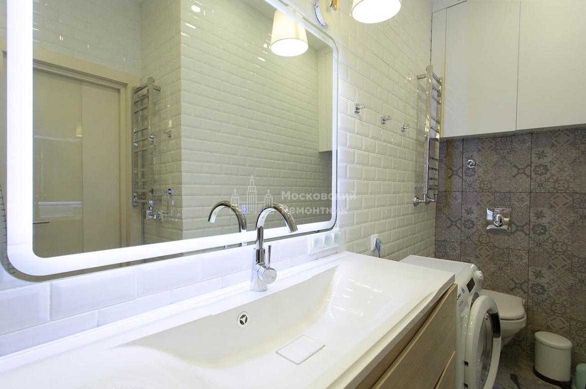 Санузлы – это самый дорогой участок получился. Мастера уложили плитку в комбинации с бордюрчиком, заменили все трубы и сантехнику, не забыли про люки ревизии и подключение бойлера. В маленьком гостевом санузле с трудом, но втиснули раковину, в нише сделали полочки для бытовой химии. На плитке у нас работал Игорь, рекомендую, опытный и рукастый мастер. Каждый уголок сделал аккуратно, швы на плитке тонкие и ровные. Вся сантехника установлена по правилам, все подключения сделаны. Прожили в квартире уже больше месяца, пока недостатки в глаза не лезут.